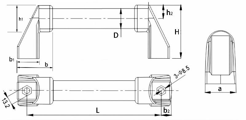 材質(zhì):管身(鋁合金)、拉手支座(增強(qiáng)尼龍含30%玻璃纖維)